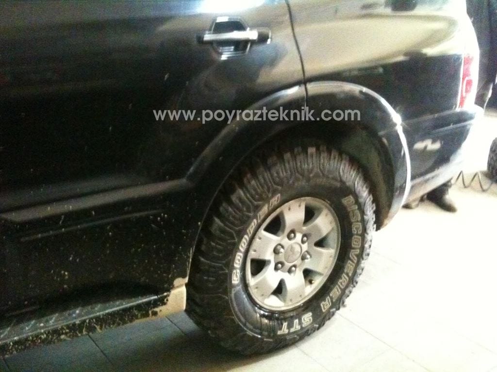 Pajero 3.2 DID Off Road Off Road MT lastik, farklı ebatlarda, ET değerlerinde jant denemeleri.